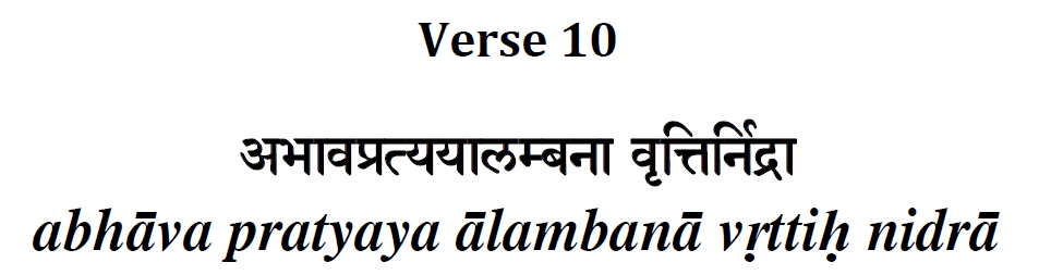 Patañjali is The purpose of sleep (nidrä) [note this is different from the dream state] is to maintain the mind by giving it a focus (pratyaya; as in an object or idea) upon which to sustain itself (ālambanā; as in something to lean on, or a temporary foundation) and that something is nothingness or abhāva which means emptiness and more specifically it means nothing to love or adore, nothing to feel and consequently no meaningful existence.