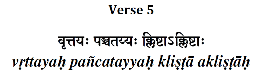 So your behavior creates your internal conditions, and your internal conditions create your mental activities. Patañjali categorizes all mental activity into five categories. These are in the next verse, yoga sūtra 1.6.