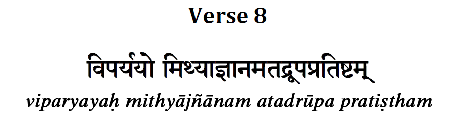 viparyaya – n. mistake, misperception, illusion,  contrary; literally (vi) against (paryaya) revolution-the normal succession